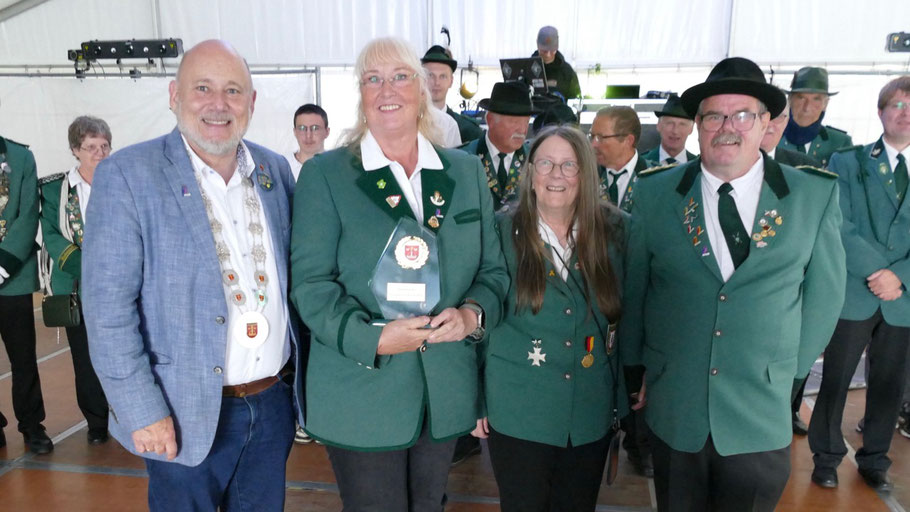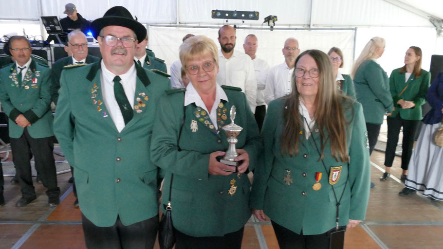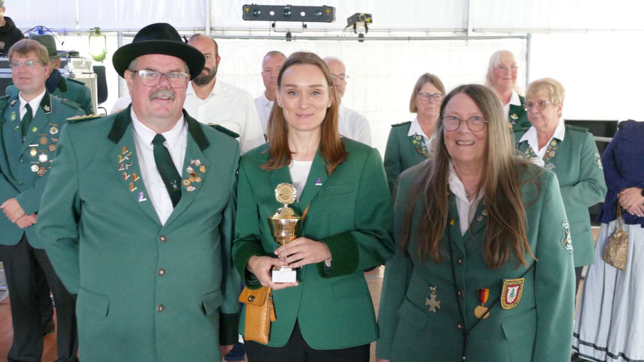 Dieser Pokal wurde mit dem KK-Gewehr auf 50m auf eine Ringscheibe ausgeschossen. Der amtierende Bürgermeister Thomas Beckmann überreichte dann sogleich den Pokal an die Gewinnerin dieses sehr schönen Pokals: