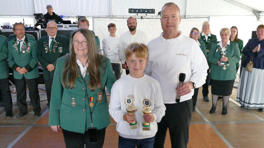 "Wenn die Jugendlichen älter werden und nicht mehr auf die Jugendkönigsscheibe schießen können, so können sie das aber auf die Königsscheibe machen", so der Vereinsvorsitzende. Und so kam es, dass Ralph als 1. Ritter den ehemaligen Jugendkönig aufrief: Finn Brunckhorst