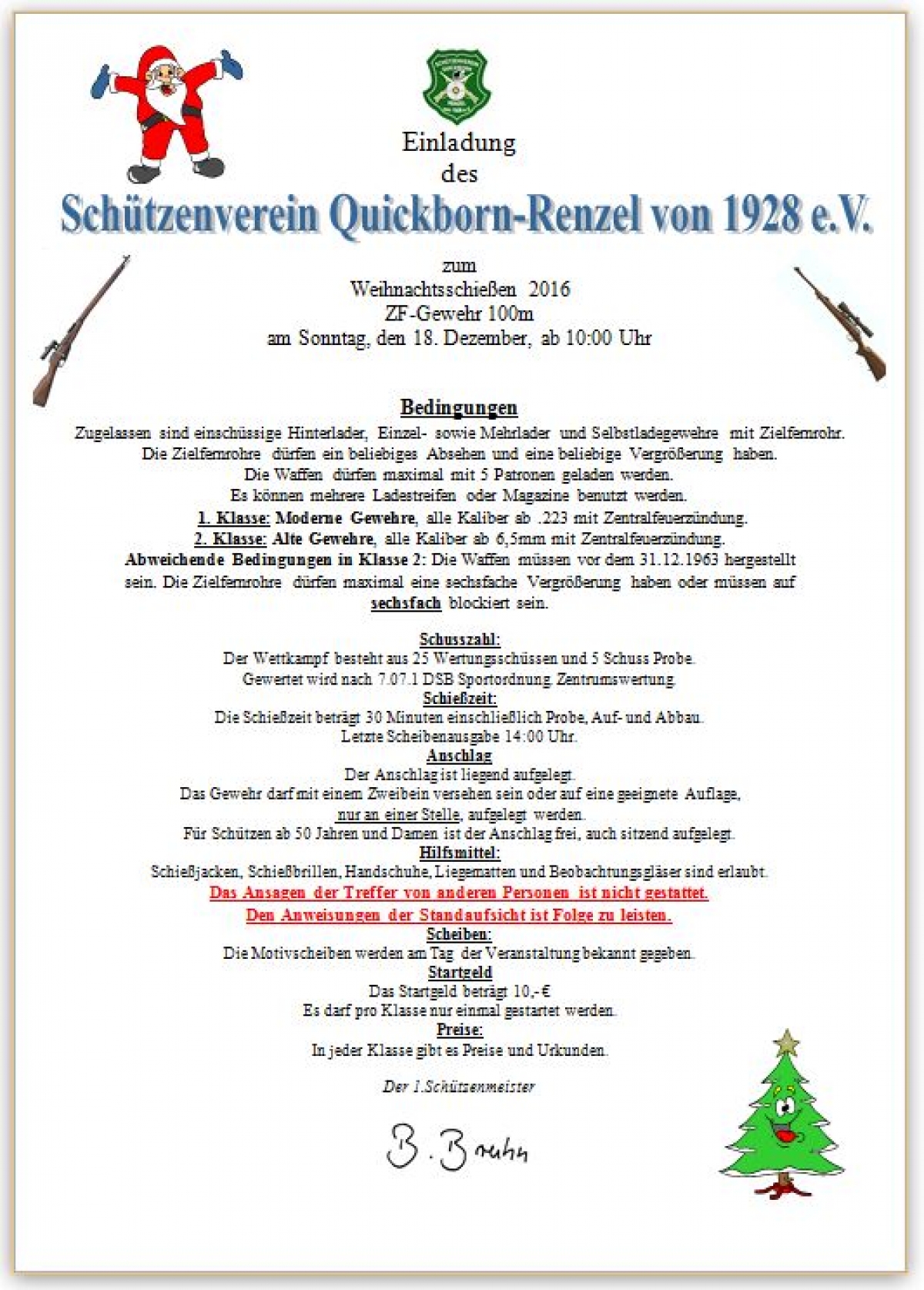 Schießjacken, Schießbrillen, Handschuhe, Liegematten und Beobachtungsgläser sind erlaubt.